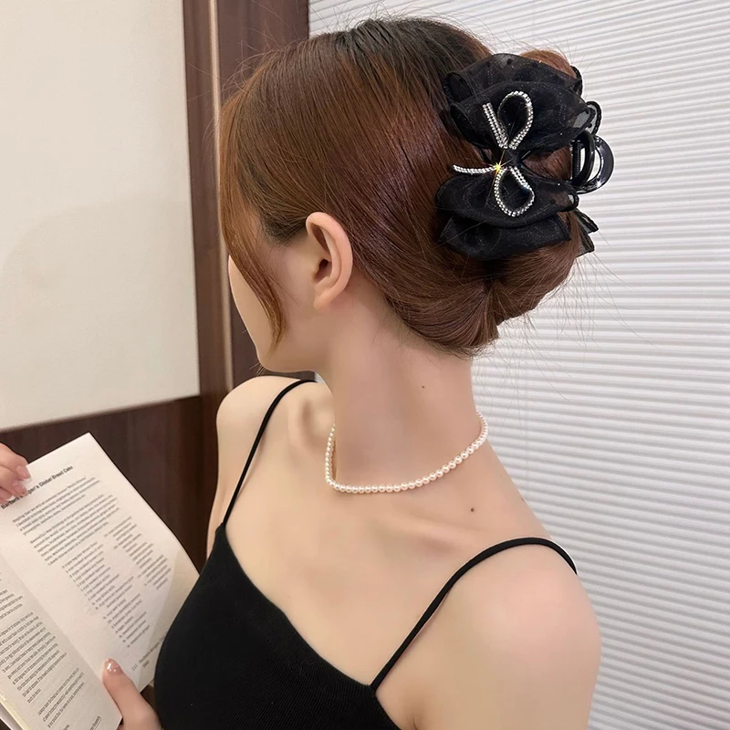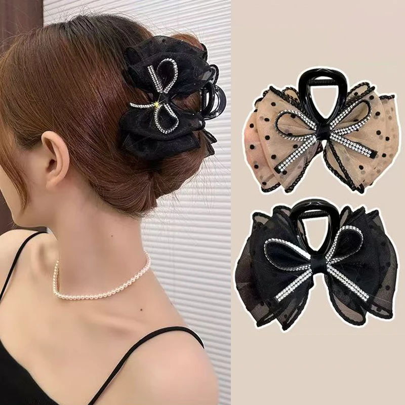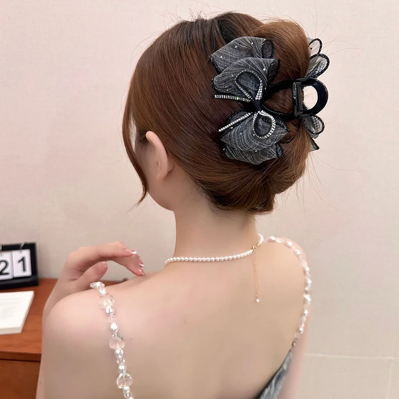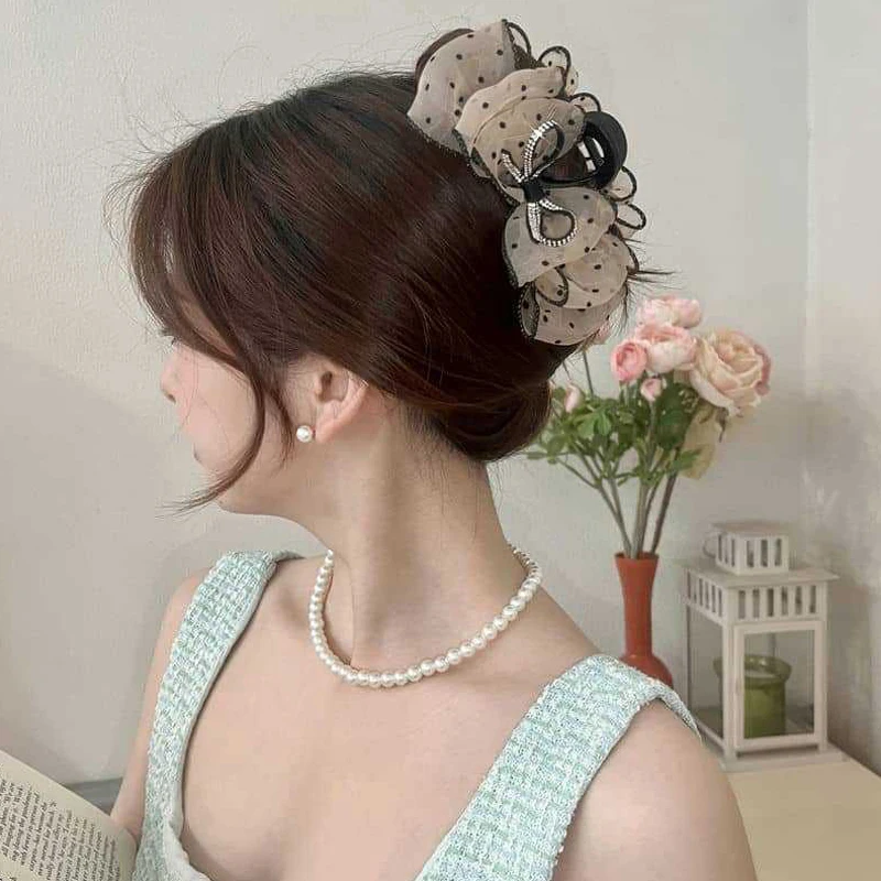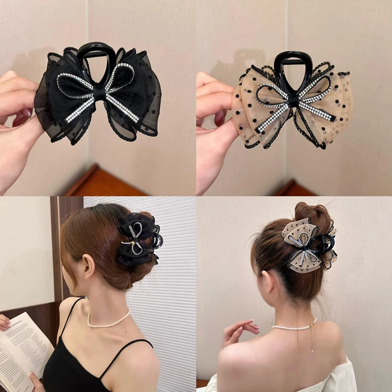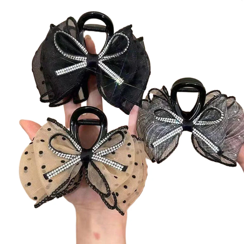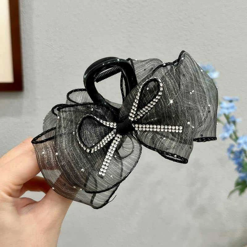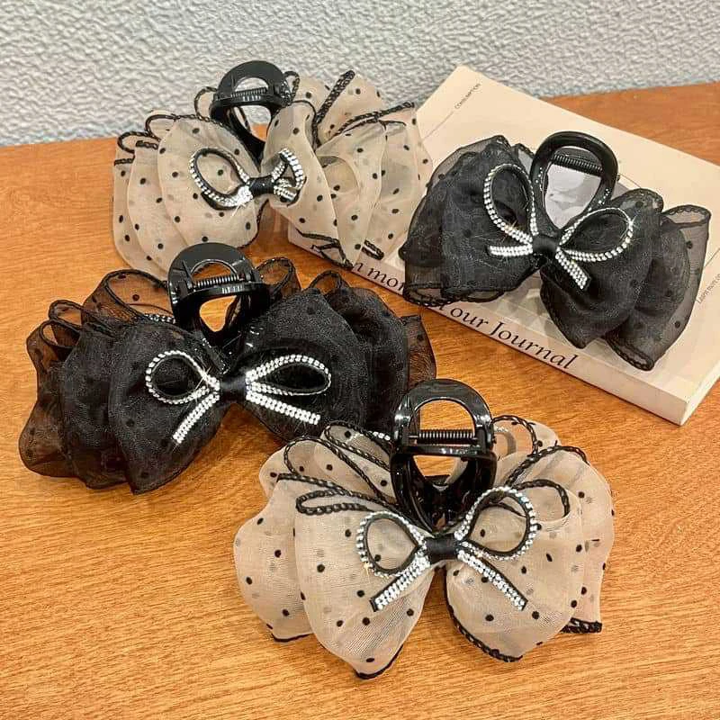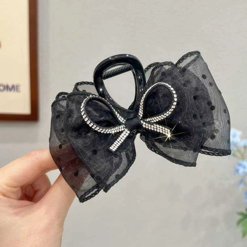🎀✨ Elegant Mesh Bow Hair Claw Clip